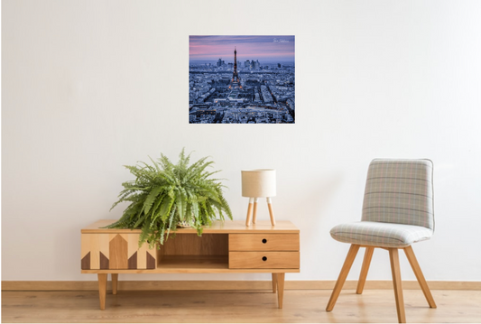 Atardecer sobre la Torre Eiffel, disponible en tamaño 50 x 70 cm.