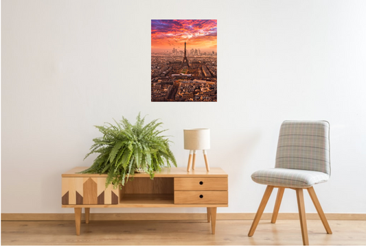 Atardecer sobre la Torre Eiffel, disponible en tamaño 50 x 70 cm.